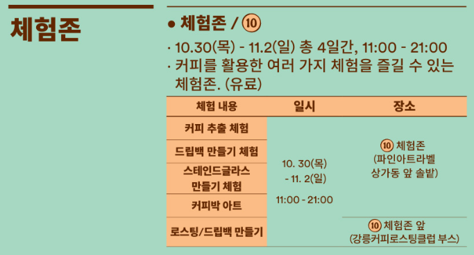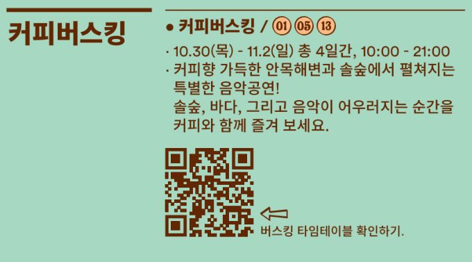 시원한 바다와 진한 커피 향이 어우러지는 이 축제는 매년 수많은 방문객의 발길을 사로잡고 있죠. 올해는 10월 30일 목요일부터 11월 2일 일요일까지, 단 4일간! 오전 10시부터 오후 9시까지 다채로운 프로그램이 펼쳐질 예정이에요.