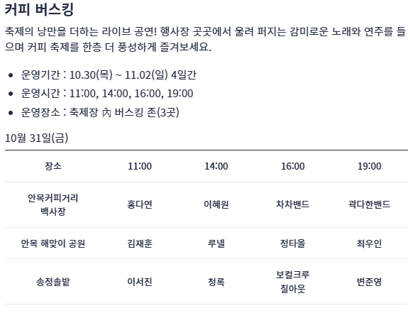 강릉 커피축제 공연 & 커피버스킹 라인업