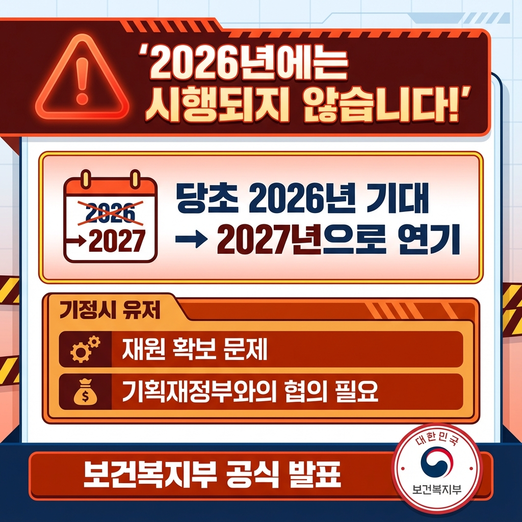 A. 국정과제로 선정된 만큼 정부는 차질 없이 추진하겠다고 밝혔습니다. 다만 재원 확보 문제로 인해 시행 시기가 조정될 가능성은 있으니, 보건복지부 공지를 지속적으로 확인하시기 바랍니다.