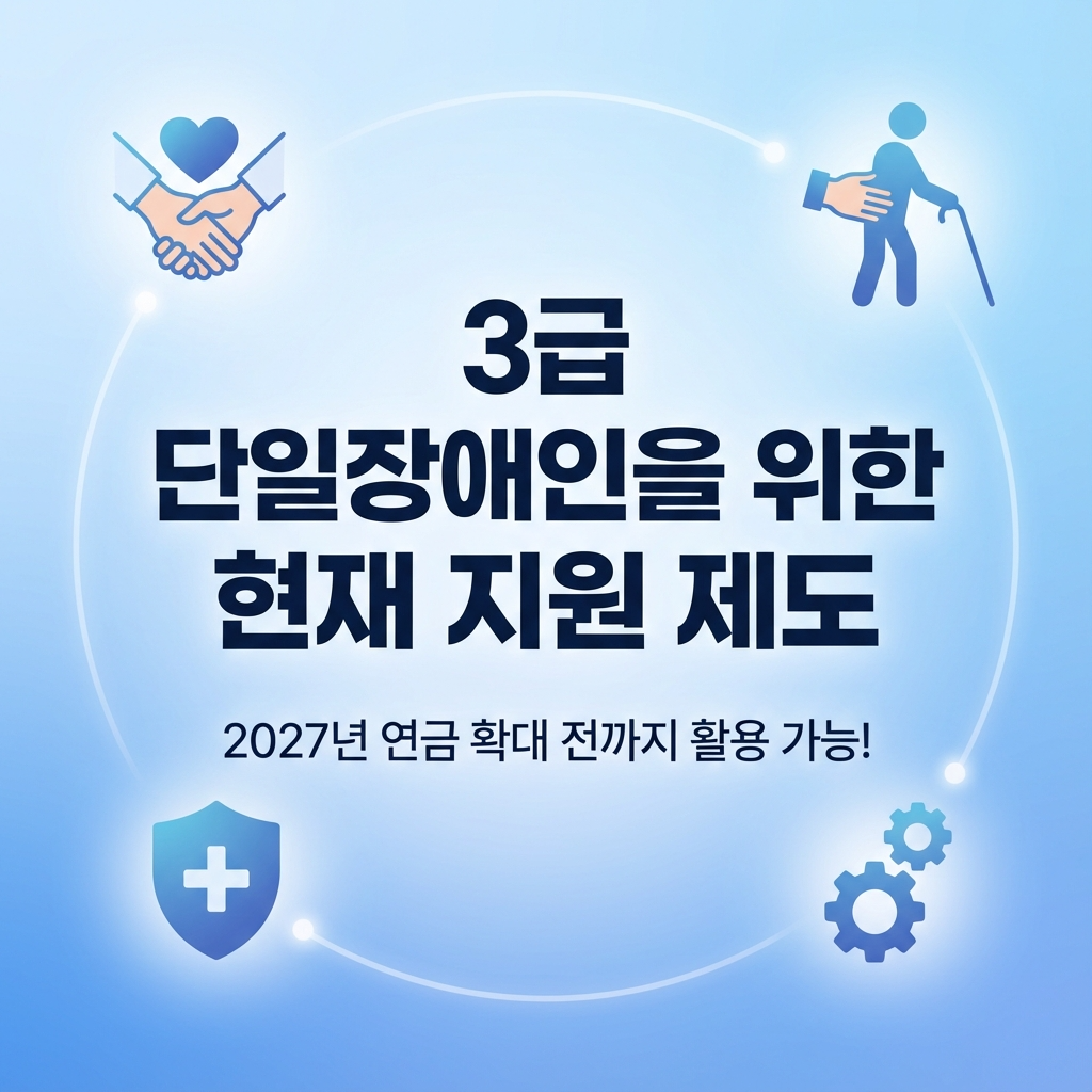 장애인 연금 3급 확대가 2027년에 시행되기 전까지, 3급 단일장애인이 받을 수 있는 현재 지원 제도를 안내해드립니다.