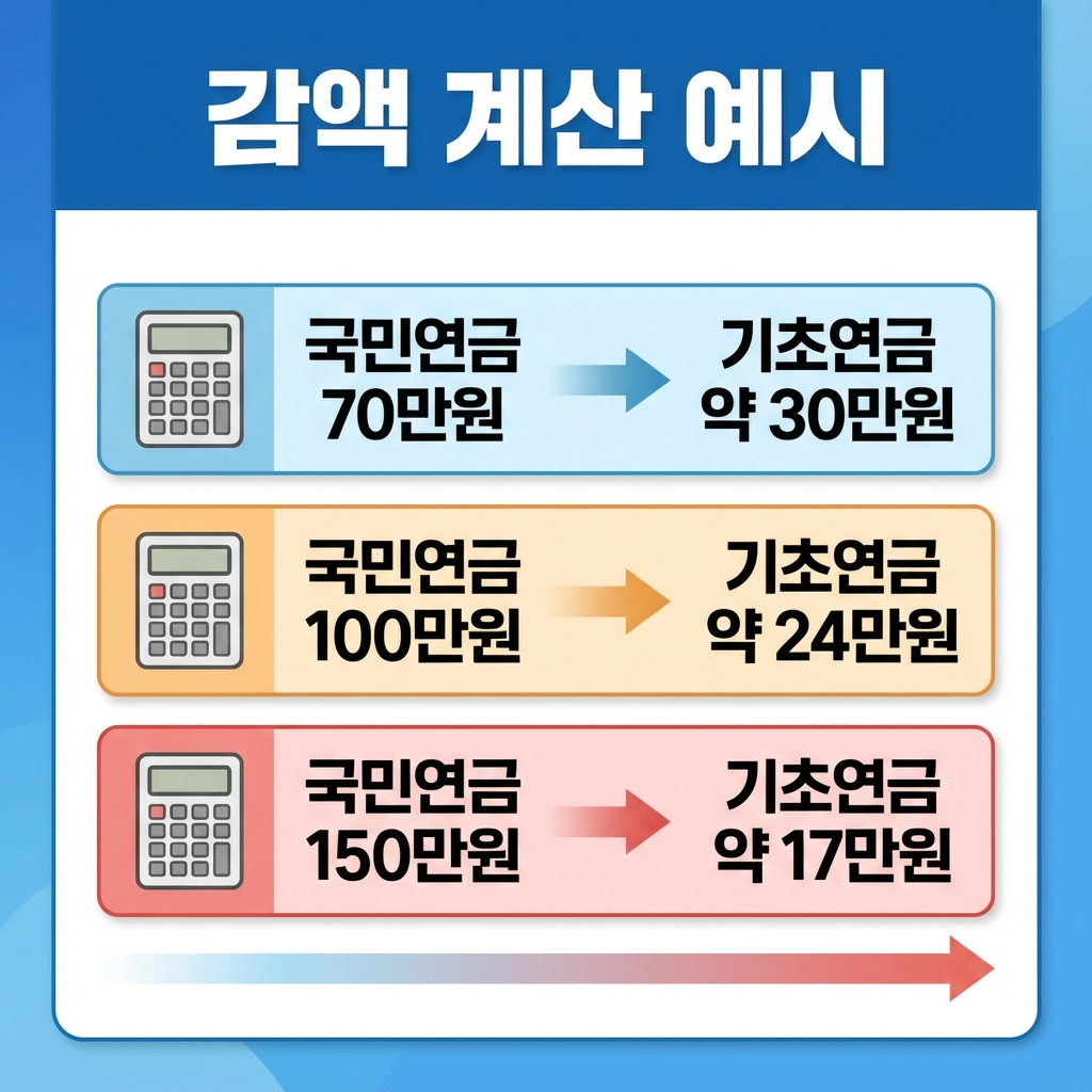 • 최대 감액액: 약 17만원 (기초연금의 50% 수준)