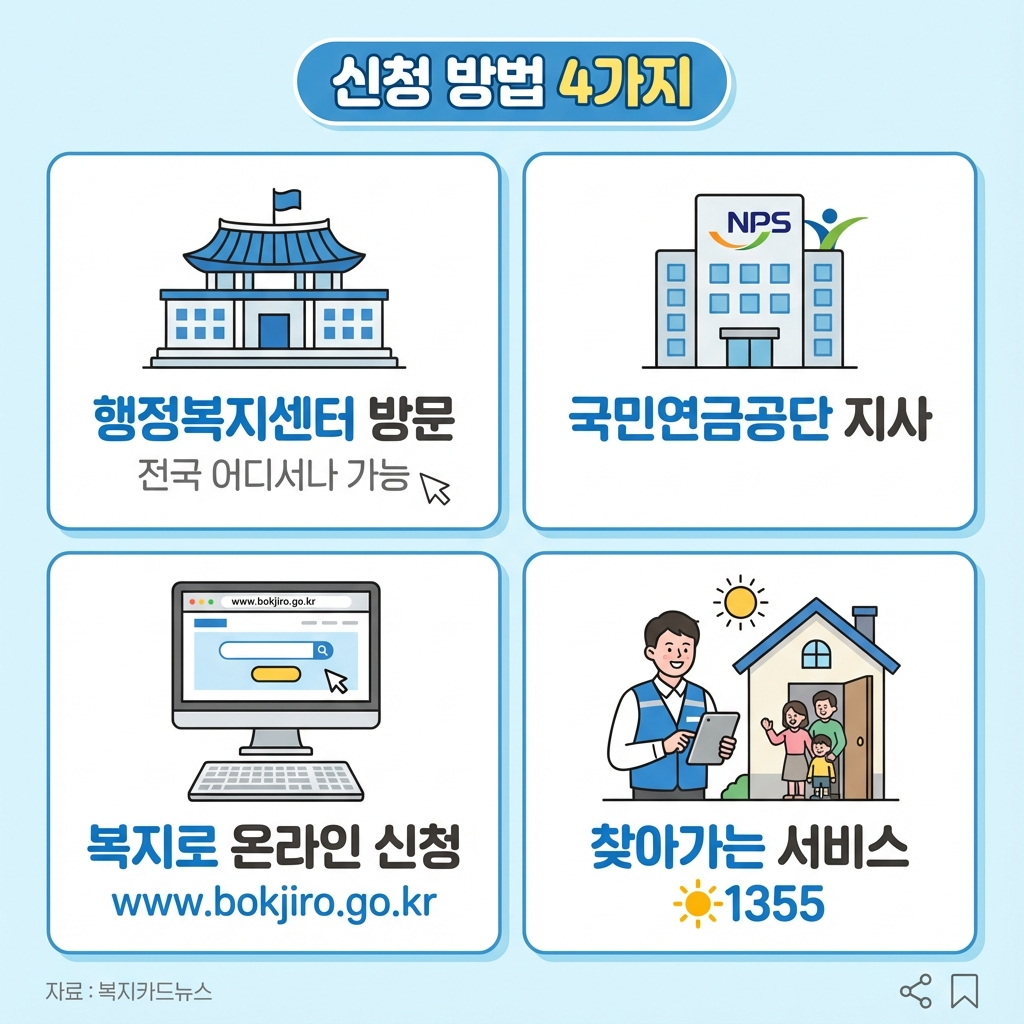 3. 복지로 온라인 신청: www.bokjiro.go.kr에서 24시간 신청 가능