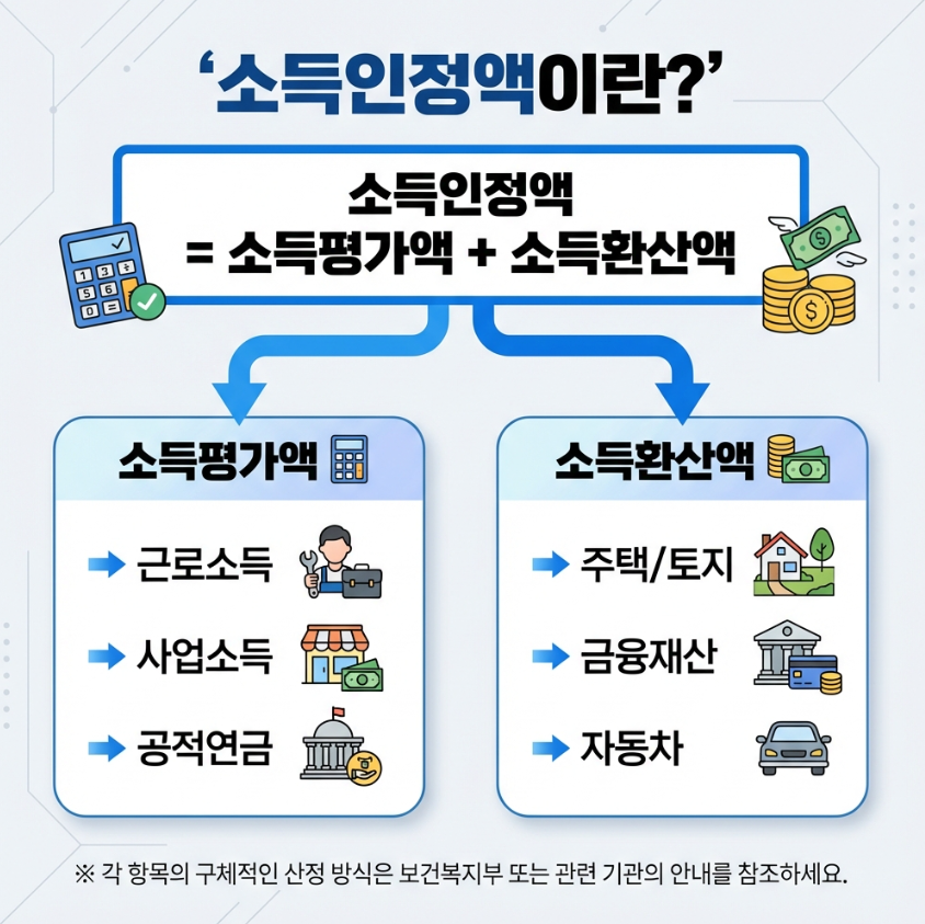 기초연금 수급 자격을 결정하는 핵심은 소득인정액입니다. 소득인정액은 단순히 월급만 보는 것이 아니라, 소득과 재산을 종합적으로 평가한 금액입니다.