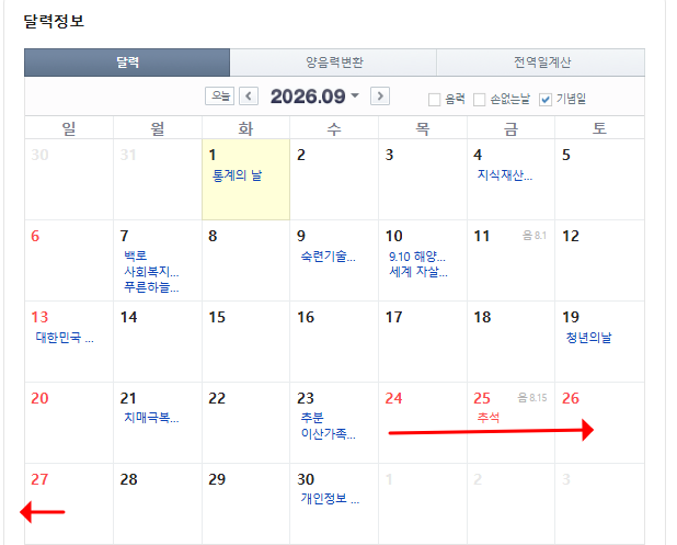 (2) 추석 연휴 (9월 24일 ~ 27일)